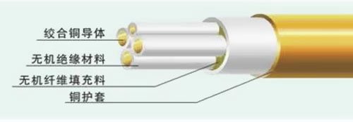 1.導(dǎo) 體:多股銅線絞合;2.絕緣層:耐高溫、不焚燒的無機絕緣資料;3.銅護套:縱包焊接并軋紋;4.外護層:低煙無鹵資料